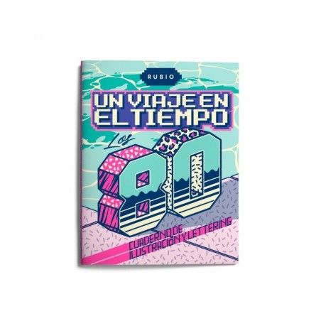 Si estás leyendo esto es porque la cubierta te ha llamado la atención y te estás diciendo a ti mismo: «íPues sí que han cambiado los cuadernos RUBIO...!». Pero no hemos hecho un cuaderno de ilustración y lettering más, sino que vamos a hacer juntos un viaje en el tiempo. solo tener los rotuladores preparados para recrear los estilos más conocidos de esta década. Siéntete libre de desplegar toda tu creatividad: nosotros te hemos puesto unas guías para ayudarte, pero tú puedes crear libremente a partir de nuestras propuestas. Las piscinas de las mansiones de Malibú, la estética pixelada de los videojuegos o los himnos de la música pop son algunas de las excusas que hemos buscado para que exploremos juntos la caligrafía y los motivos visuales más llamativos de los 80.